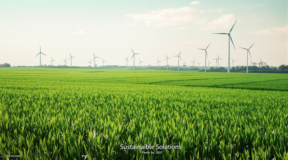 This project features images related to nature and sustainability, including wind turbines in a green field under blue sky, and a blue-tinted mountain landscape with misty valleys.